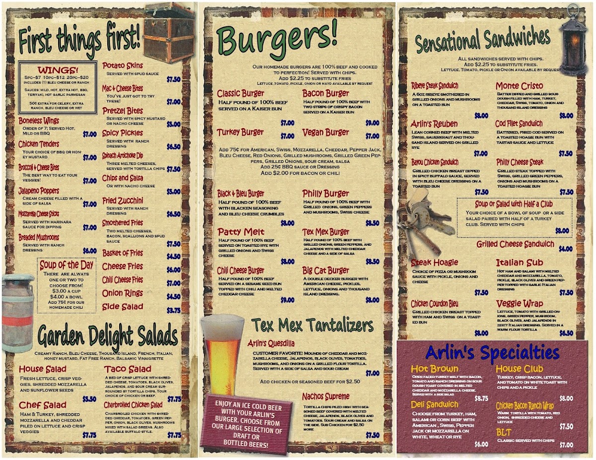 Arlin's Bar & Garden Menu